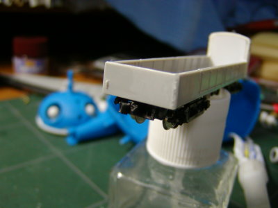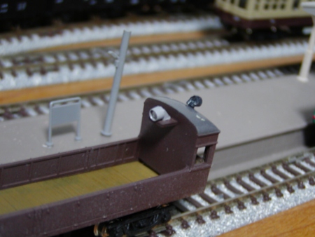 鉄コレネタ:フリーランス クル ついカッとなってやった。クルならなんでもよかった。今も反省していない。 結局Hゴムやめました。これ以上やると命の危機を感じたので。カプラーは鉄コレのカプラーポケットにTNを無理矢理つっこむというやっつけ工法です。若干位置が高いのですが、どうせ他車と連結はしないので。トップコートにミスった感がありますが、モチベーション低下のため妥協。 ○屋根 グンゼ、もといクレオスのRLM74ダークグレーで塗装。前照灯を黒で塗装しました。 ○車体 アオリ戸はGMのクモハ+クモニから流用。何故か若干短くなってます。 余剰の前面パーツから色々持ってきたところ、非常に罪深い気分です。 ○床下 結局ブリルから弓形イコライザになりました。 あとは画像の通り、適当の権化です。 作業灯。お気に入りです。 乗務員扉分だけ残して車体をカット。 アオリ戸はGMのクモハ+クモニのキットから流用。 そうしてみたら床板がはみ出たので9mmカット。 旧50系制作の際ダルマにしたワム70000のウェイトで接合。 ゴム系で止めるだけで結構頑丈です。 無蓋部。 プラ板に2mm間隔でデザインナイフの刃でスジ入れ。 ご覧の通り、床板は余計な物を取り去りました。 台車はブリル。機器はテキトーです。 単体で留置するときに見栄えが良いよう両側とも伸縮式TN。 真ん中は中サンを入れ、向かって右側は溶きパテでHゴムっぽく。 阿鼻叫喚地獄絵図です。 >>Back |