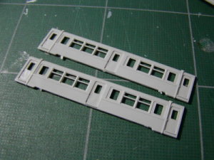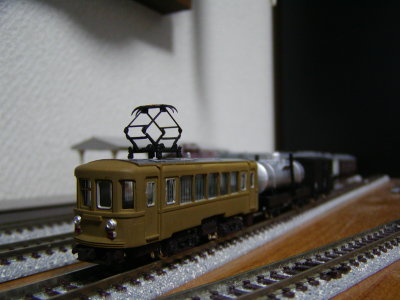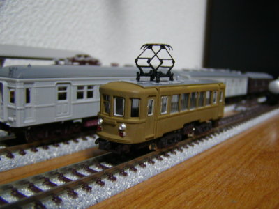フリー モ600 豊川サンから頂戴したGM江ノ電1000形キットのおまけ、 600形ベースのフリーランスです。 しかし…。 絶句。 とりあえず、どうしようもない。 一番どうしようもない真ん中の扉をブチ抜いたので全体を切り接ぎ。 床下もどうしようもない。 というか無いので自作。GMオハネ12が棚から落下、事故廃車となったのでその床下を再利用。発電機は抵抗器ということにしておくれ。 何故片側の窓三枚のサッシを削り取ったかと言えば、機器類を車内に詰め込んだという苦しい設定で床下問題を解決したかったからなんです。 つかこれ、ブリル履いたらキモイ。 履かせてみた。 適当にごちゃごちゃさせてTNカプラーつけたら、ソレっぽくなったんで◎。 制作再開。 床下ですが、発電機をキ1に奪われたので事故廃車(泣)となったクモハ11から流用。 やっぱ電車は抵抗器です。 カーキにしてみた。 ダメでした。 保護棒付き窓セルを入れてみた。 やっつけ感溢れます。 入換中。 酷いけど貨車付けて遠目で見ると小私鉄特有のだささが出てる…かな? とりあえず完成。 >>Back |