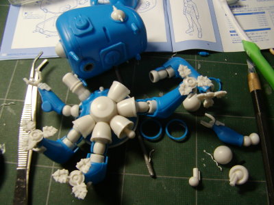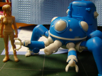 タチコマ 2nd G.I.G Ver うはwwwキタコレwwwww 我が家にタチコマがやってきた。箱絵が格好ええ。 ただ箱自体の質がお粗末。ガレキみたい(買ったこと無いけど)。 とりあえず仮組。 となりの怖い人は少佐です。似てません。 腕組みもできます。 あー、本持たせてー。 あー、これで指動いて腕がシャコシャコするとカワイイのだが。 ご覧の通り、愛らしい形状の再現はよろしいのですが、 合いが壮絶に悪いです。成形色も良くない。 その前にプラの質が悪いです。切り出す前からパーツが傷みそうになってました。 まずグレネーダーと交換できるバルカン砲。 1,5mmのピンバイスが開口にもってこい。 ん、待てよ… 1,5×24=36 36mm?! ミリオタの皆さん、わかりましたね? 口径でかすぎです。ヤバイです。 分からない皆さんへすこし解説。 現代の戦闘機に装備されているバルカン砲の口径は大抵20mm。 2cm?大したこと無いじゃないかとお考えの方もいるでしょう。 でも当たると凄い大穴空きます。 30mmバルカン砲とか犯罪的なものもってる機体もいます。 コイツは対地攻撃機で、自慢の30mmで戦車をいじめたり、 施設に穴を空けたり、トラックを木端微塵にしたりしてます。 では対象が人だとどうでしょう。 現在アメリカが使用している小銃の口径は5,56mm。 もうBB弾です。興奮していると撃たれたことに気づかないこともあるとか。 12,7mm機銃。 これ、人に使用してはいけません(と言ってもフツーに人に発砲してるようですが)。 何故かって? あたるとバラバラになって人らしい死に方ができないからだそうです。 36mmってその3倍弱です。 タチコマ君、これで人撃ってました。 いやぁ、9課って怖い。 話を戻して、 回転軸が無いのが気に入らなかったので追加。 とりあえず、銃口パーツと基部パーツの中心を1,5mmで開口、 TNカプラーのランナーの細い部分を切り取り接着。 もう、自己満足です。 構造解析?! じゃなくて、本格的に制作するためバラしました。 ∴←このモールドがヒジョーに甘かったので1mmのバイスで皿モミ。 うん、シャープになった。 ポッドの合わせ目消しをしてたら2カ所の凹モールドが消えかかったので、 そこだけくり抜いてスジ堀りし直しました。 裏からプラ板をあてがい、GMの旧50系キットの伊豆箱根用アンテナパーツを移植。 下のは若干横方向に削ってあります。 以下制作中 >>Back |